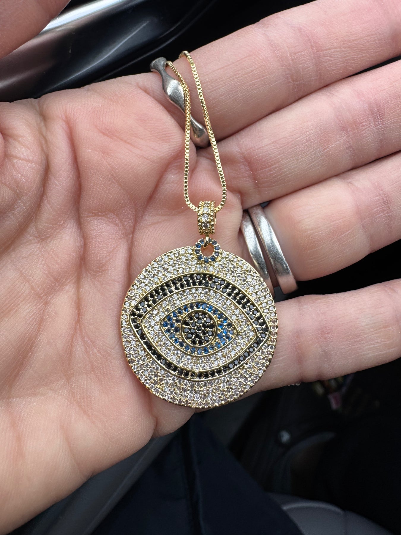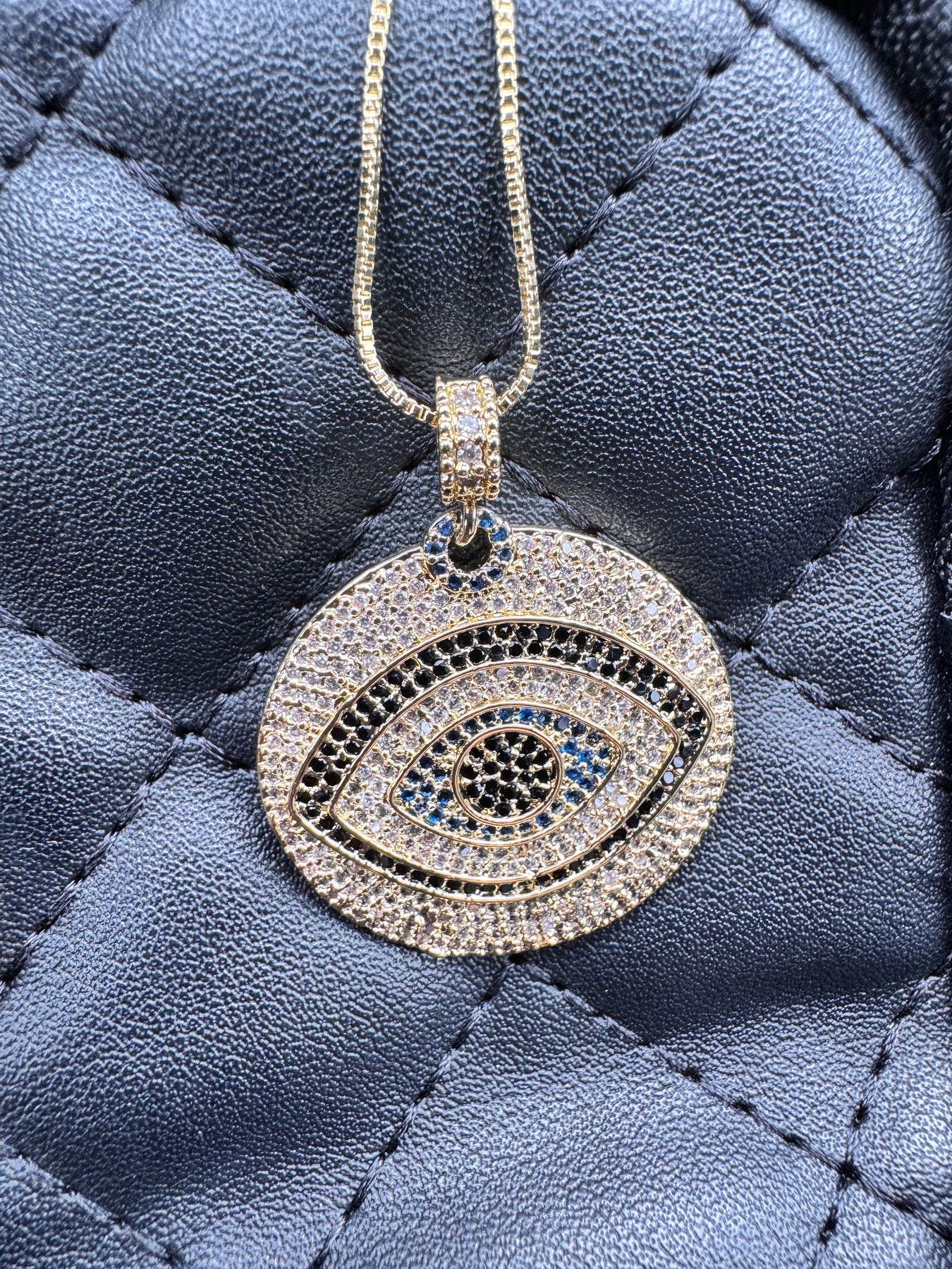 ✨ Elevate your look with this stunning Evil Eye Medallion Necklace, designed to bring both protection and shine to every moment.